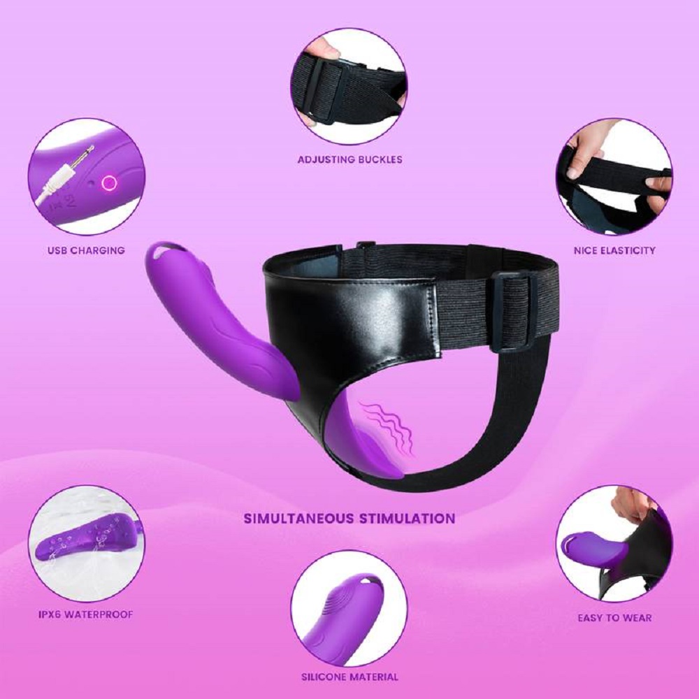 Cinta peniana com vibrador – cinta com alça elástica que se adapta a qualquer grossura de perna e quadril.