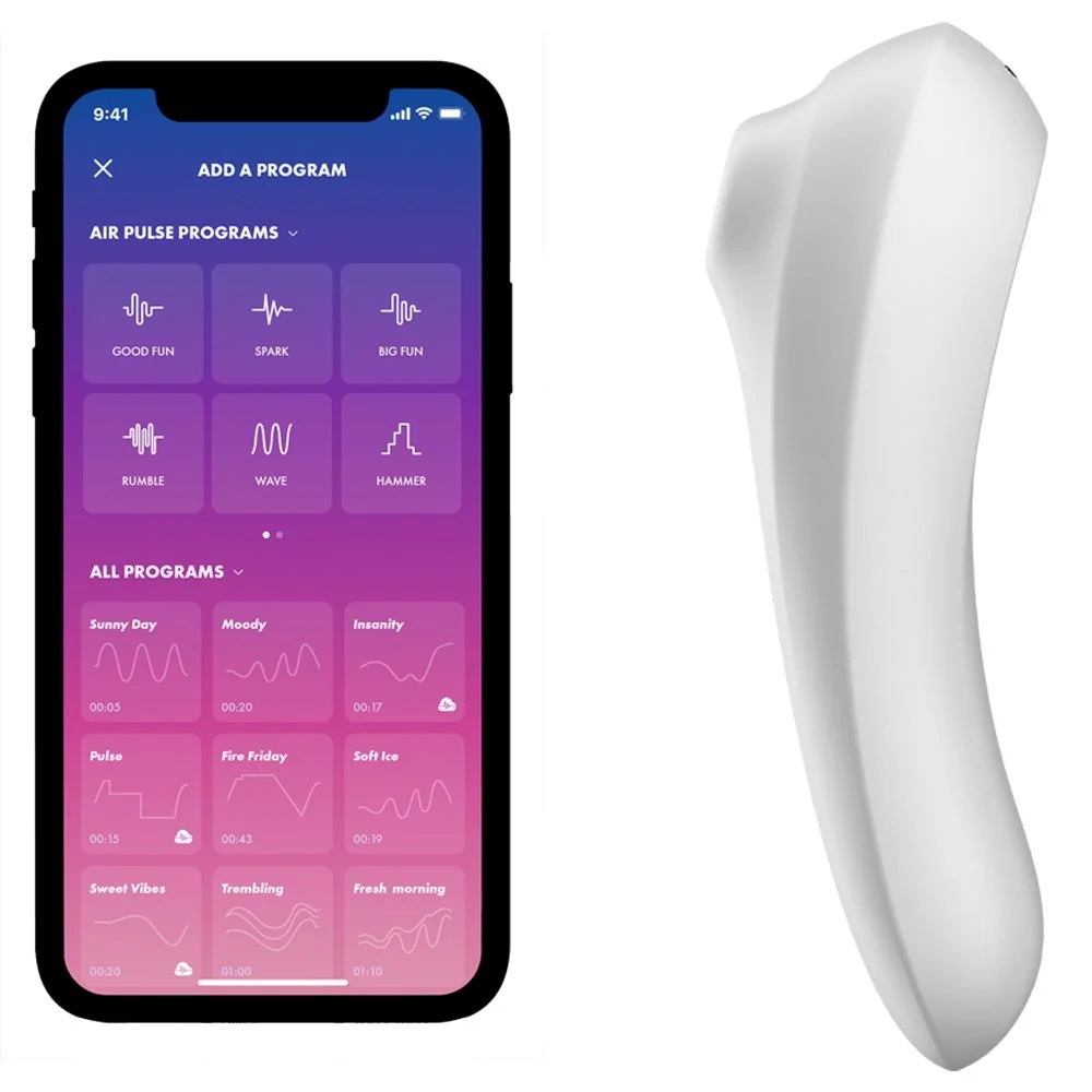 Além do próprio produto, você também consegue controlar as vibrações através do aplicativo Satisfyer Connect (gratuito para IOS e Android), onde você cria sua própria vibração passando o dedo na tela, através de diversos sons/músicas, listas pré-existentes e o melhor de tudo, compartilhar as vibrações por vídeo chat junto com seu amor, assim, ele poderá te dar prazer onde quer que esteja.