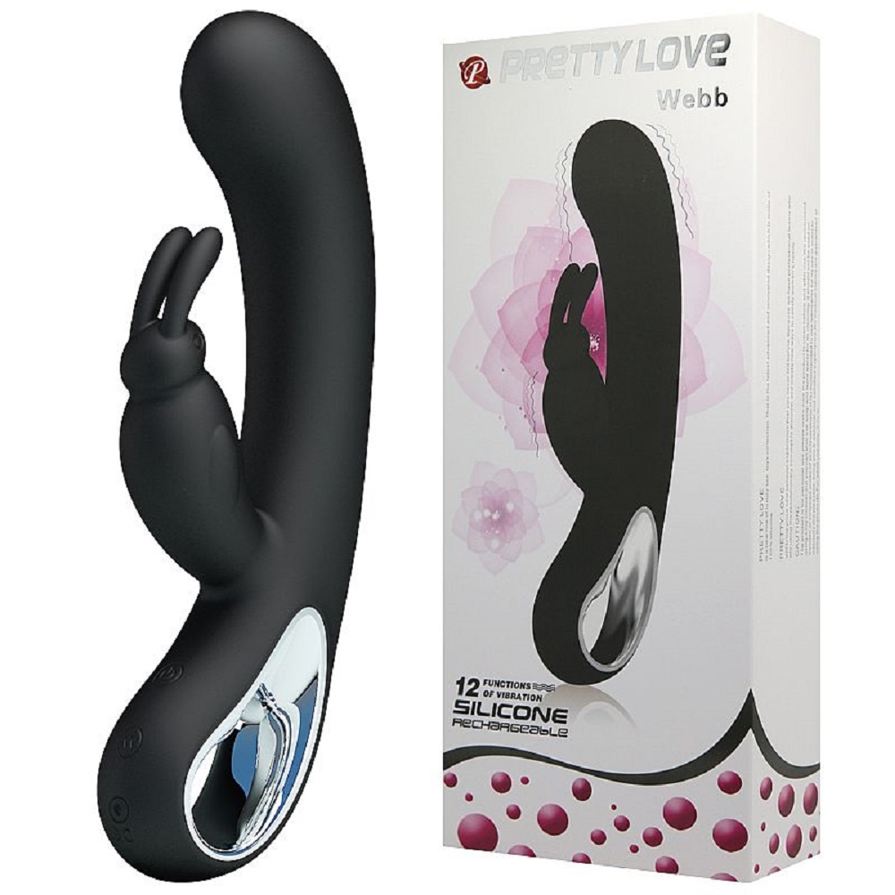 É um vibrador recarregável com estimulador de clítoris em formato de coelho.